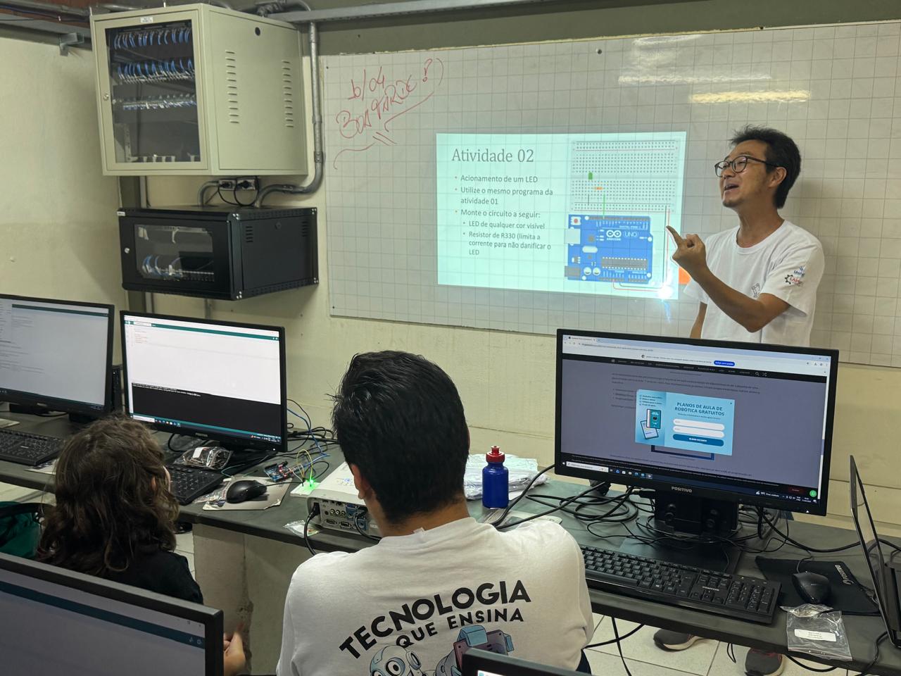 O curso ministrado pelo Professor Doutor Laos Alexandre Hirano, com auxílio de sua equipe de alunos, visa capacitar os professores de diversas disciplinas da rede estadual de ensino para atividades multidisciplinares, integrando programação e robótica ao currículo vigente, já se antecipando as implementações da BNCC computação no que tange o pensamento computacional, cultura digital e mundo digital.