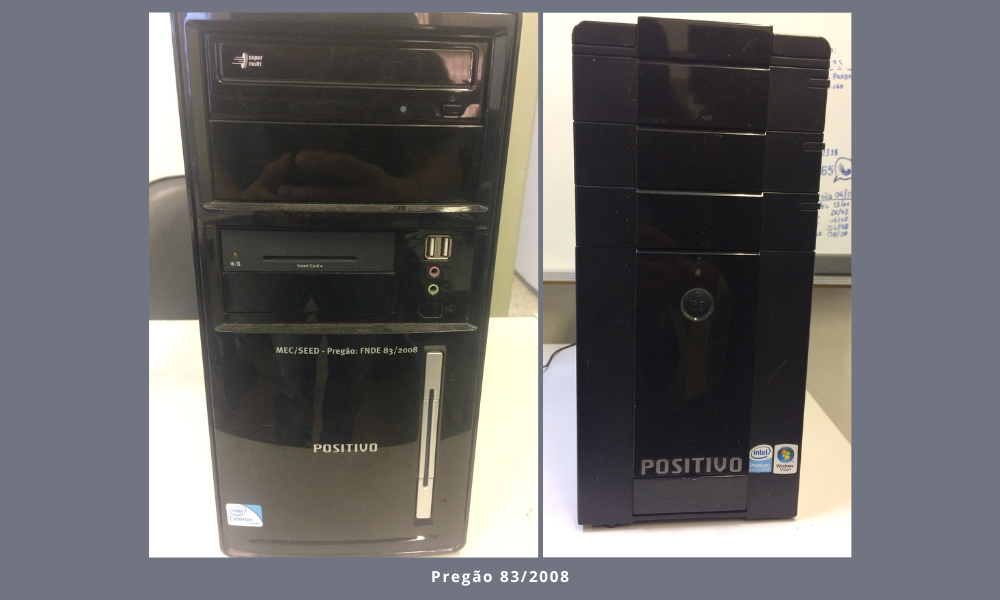 Os pregões mais recentes que estão sendo utilizados nas escolas são os pregões 33/2013, 06/2015, 122/2017 e 81/2021. A maioria dos computadores dos pregões anteriores a estes estão sendo descartados pelas escolas, através do processo de alienação, por serem inservíveis.